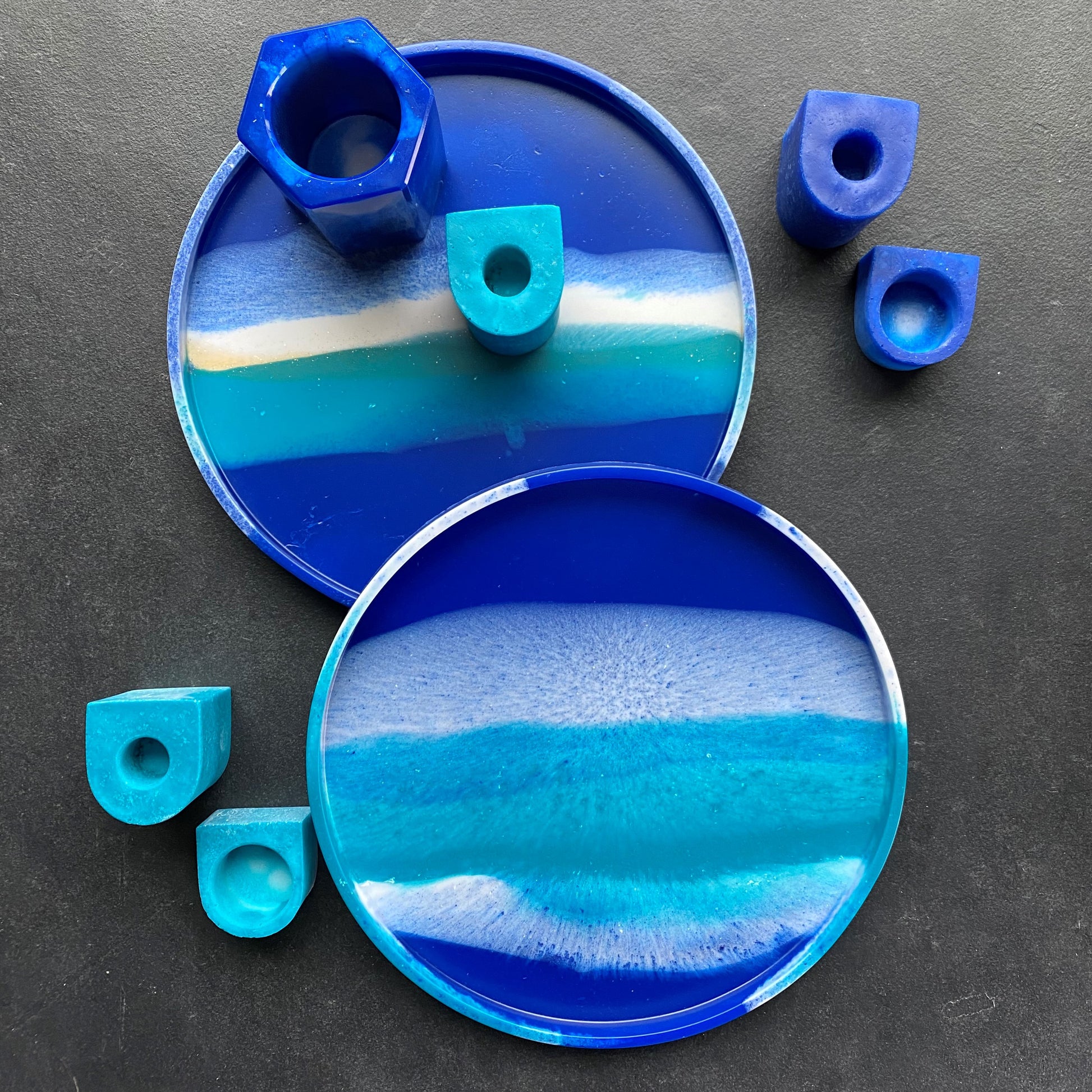 Serveerschaal Ann is een mooi rond dienblad gemaakt van epoxy. Gebruik dit dienblad om jouw sieraden, mooie glazen, kaarsen of andere kleine accessoires op te displayen!