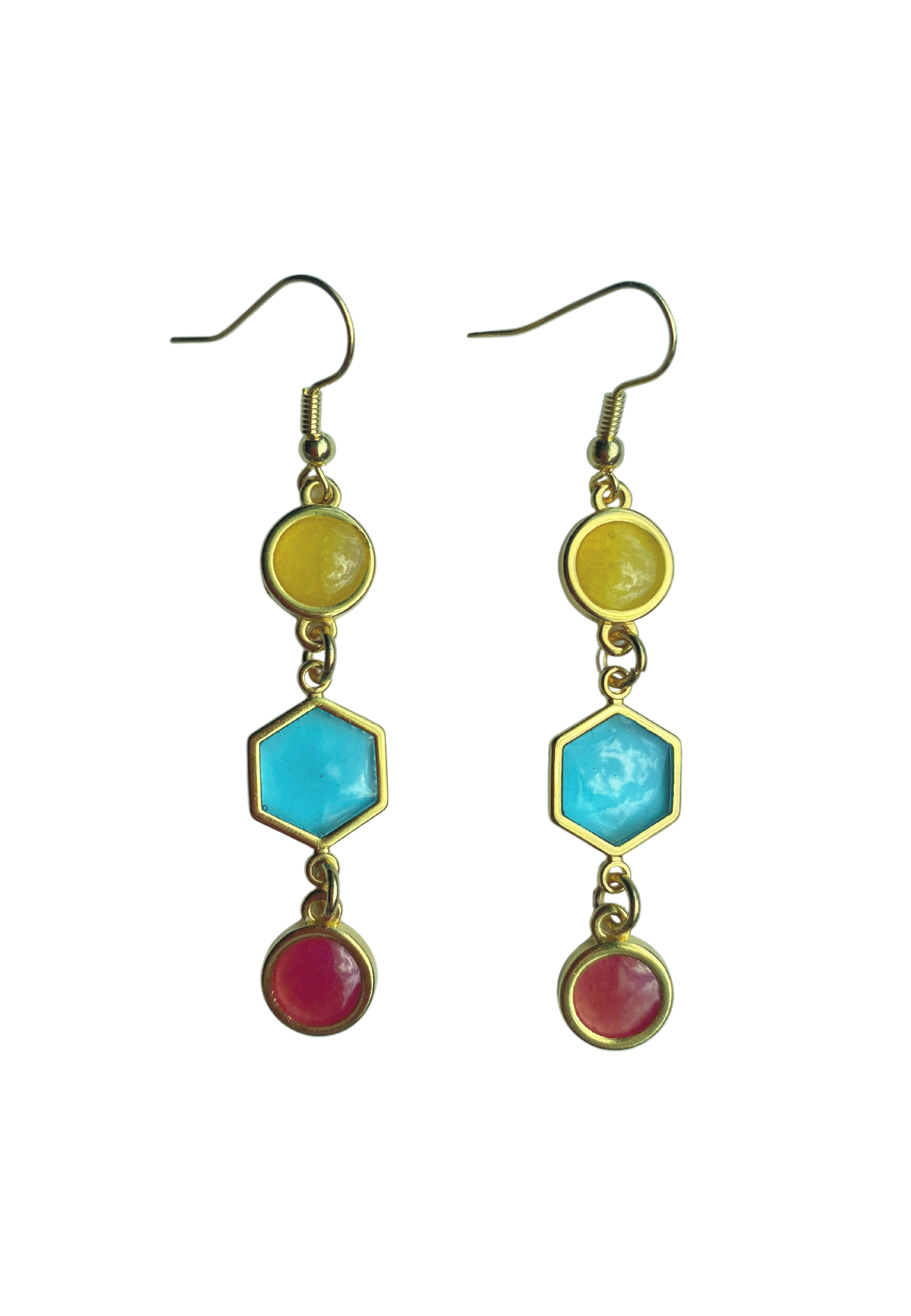 Laat je speelse kant zien met deze elegante kleurrijke oorbellen. Met dit design met goudkleurige omranding en elementen in roze, geel, oranje kleuren val je gegarandeerd op. De oorbellen zijn ontworpen voor oren met gaatjes.