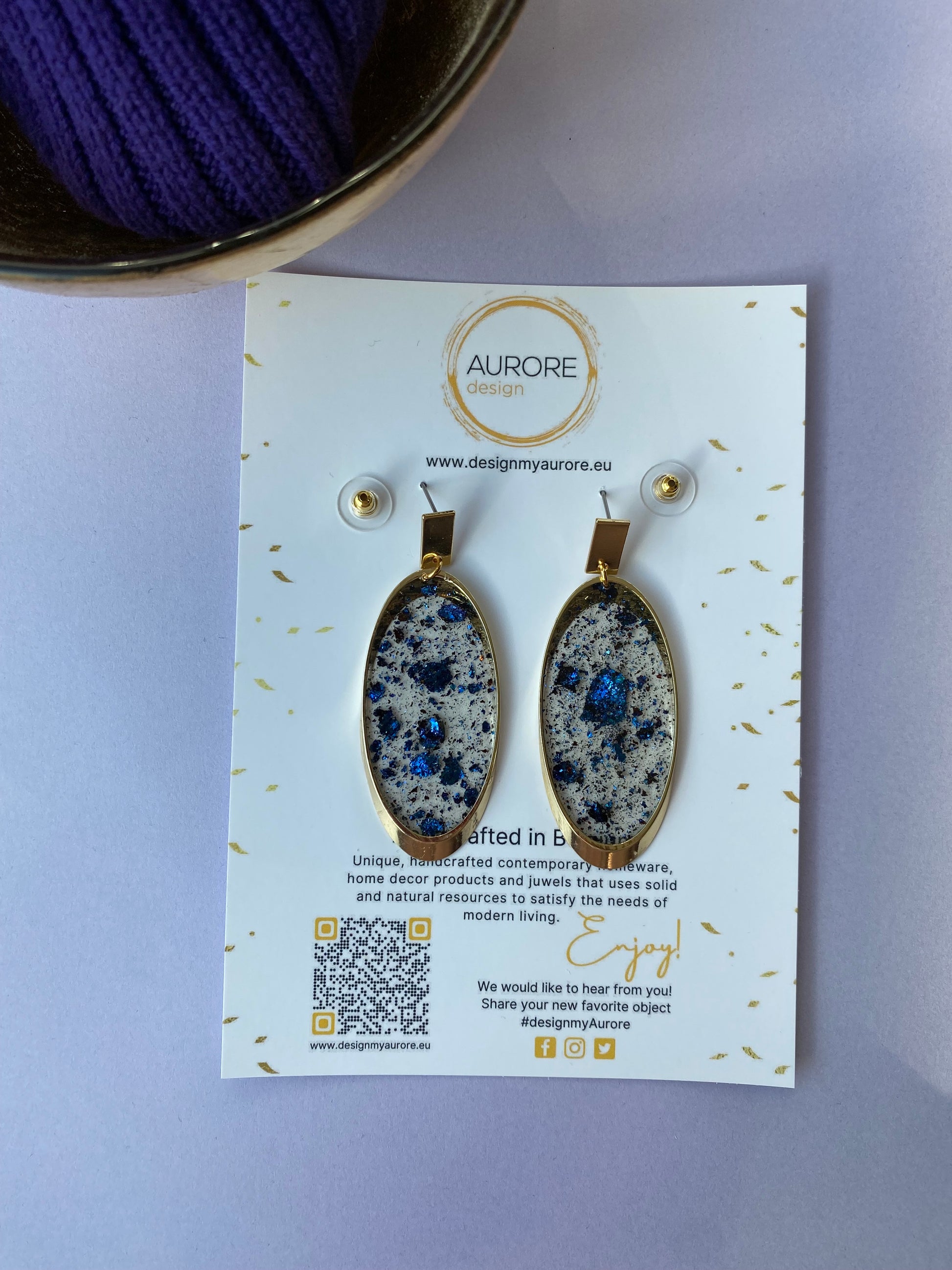 Ook deze oorbellen zijn handgemaakt, kleine variaties in de tekening kunnen voorkomen. Deze oorbellen maken onderdeel uit van de Glam lijn en komen binnenkort in verschillende kleuren.
