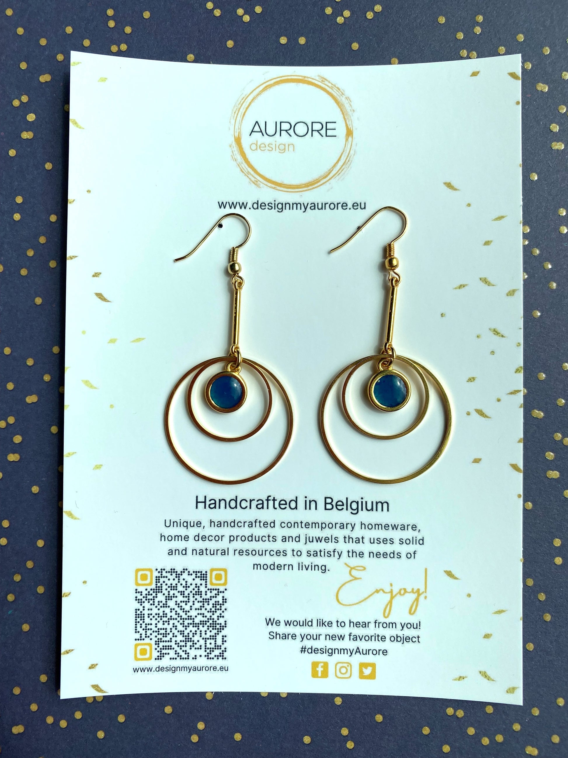 Goudkleurige oorhangers met hoepels - Hope Blauw