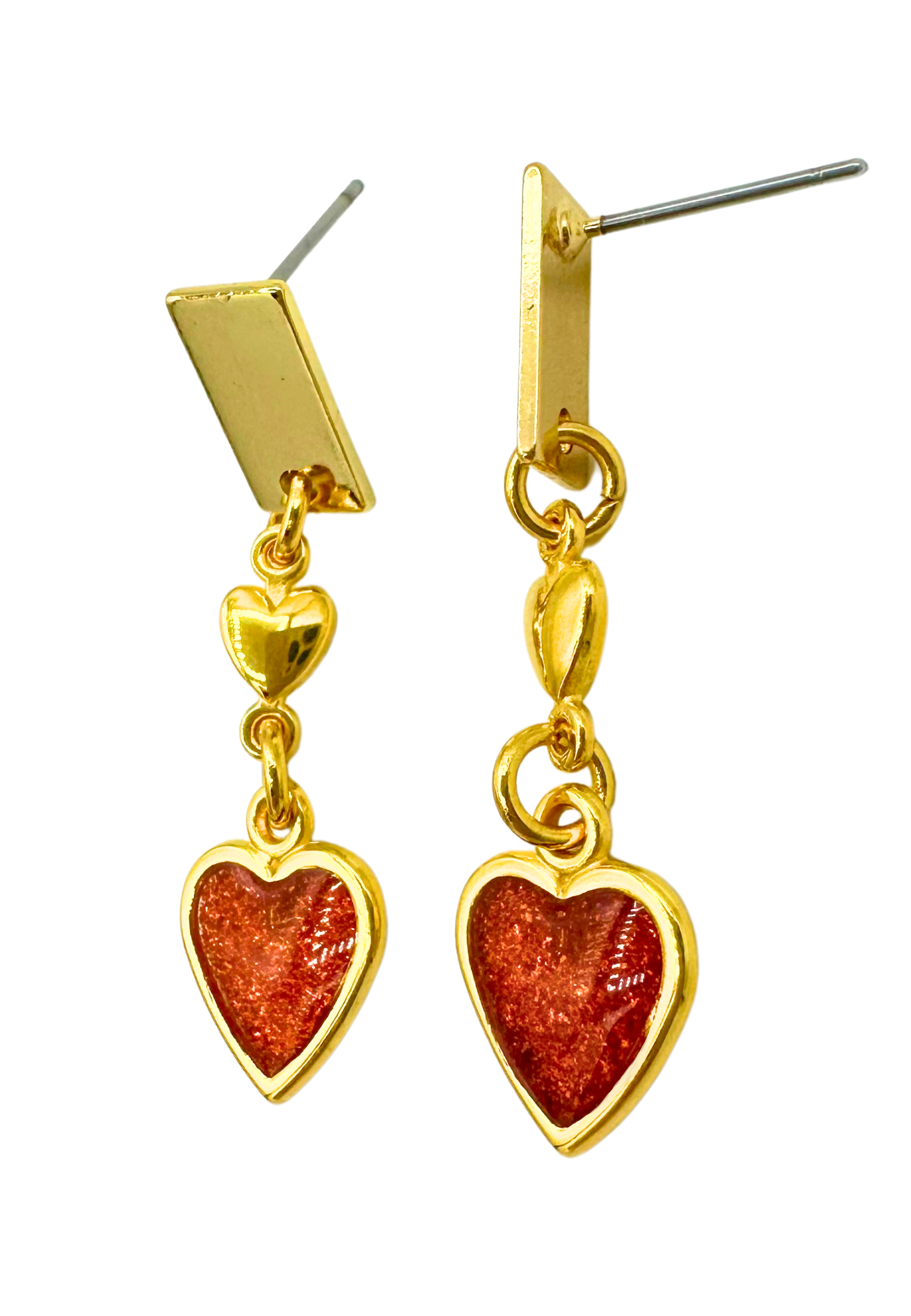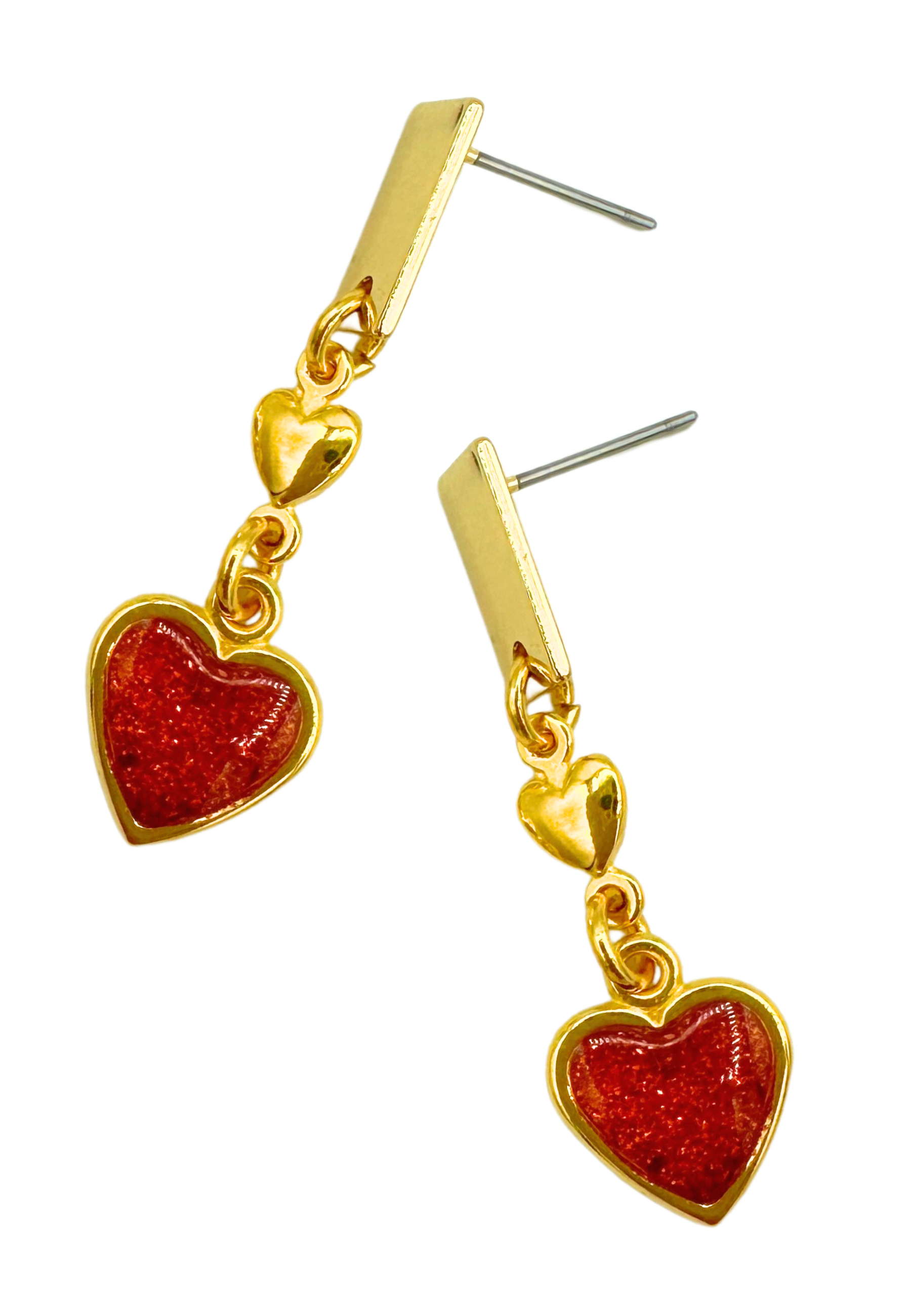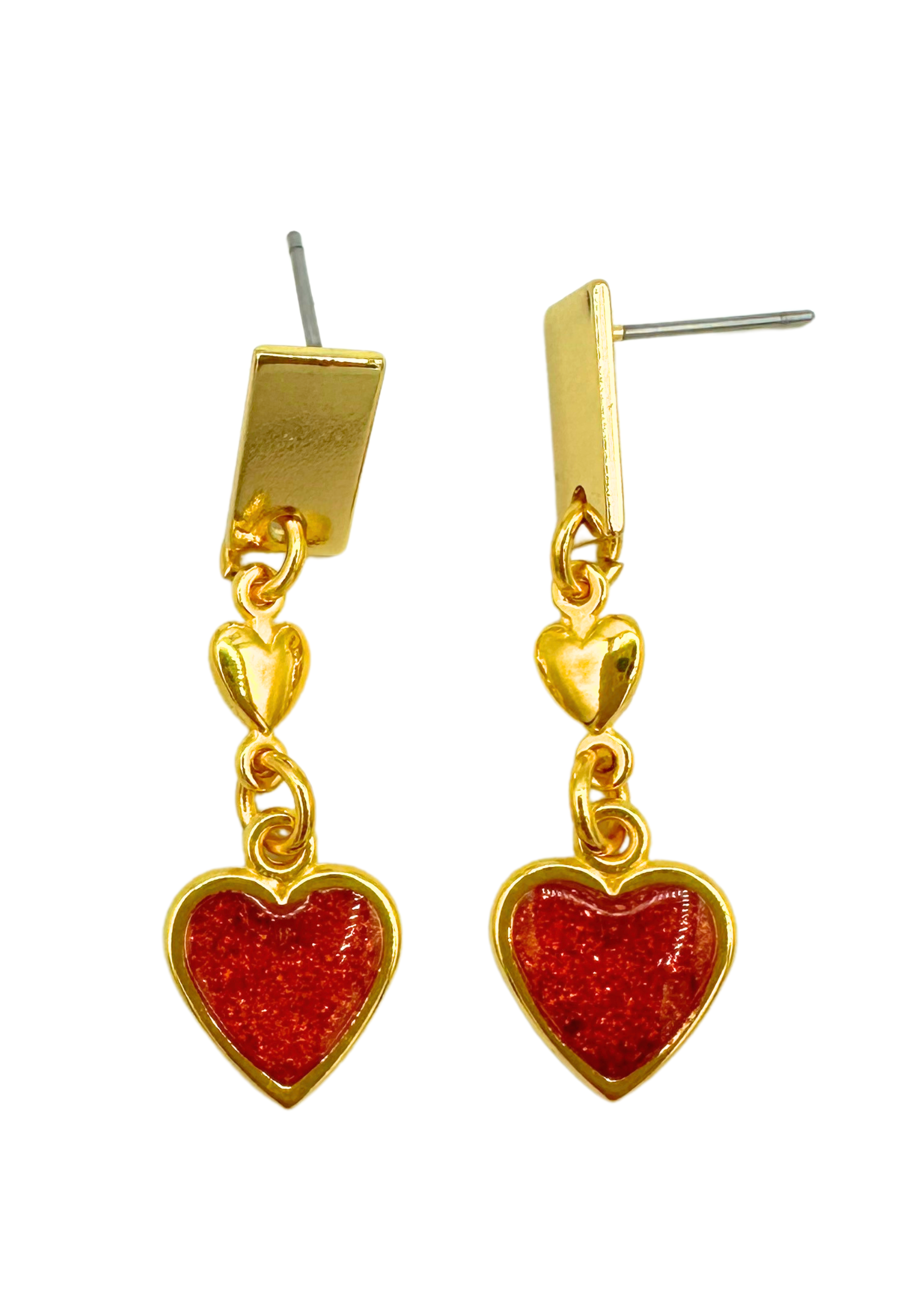 Bereid u voor op een flinke dosis romantiek met deze liefdevolle oorbellen. Deze speelse oorbellen zijn vervaardigd goudkleurig metaal met een rood hartje af.